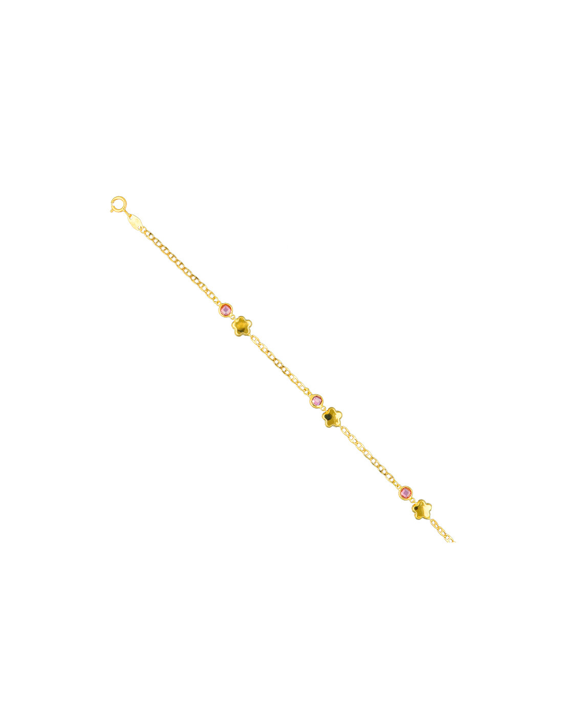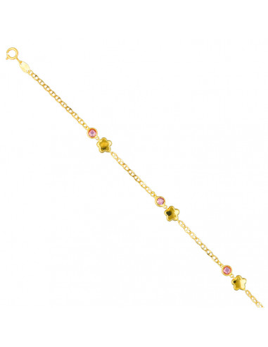 Pulsera en oro de 18 quilates con flores y circonitas.