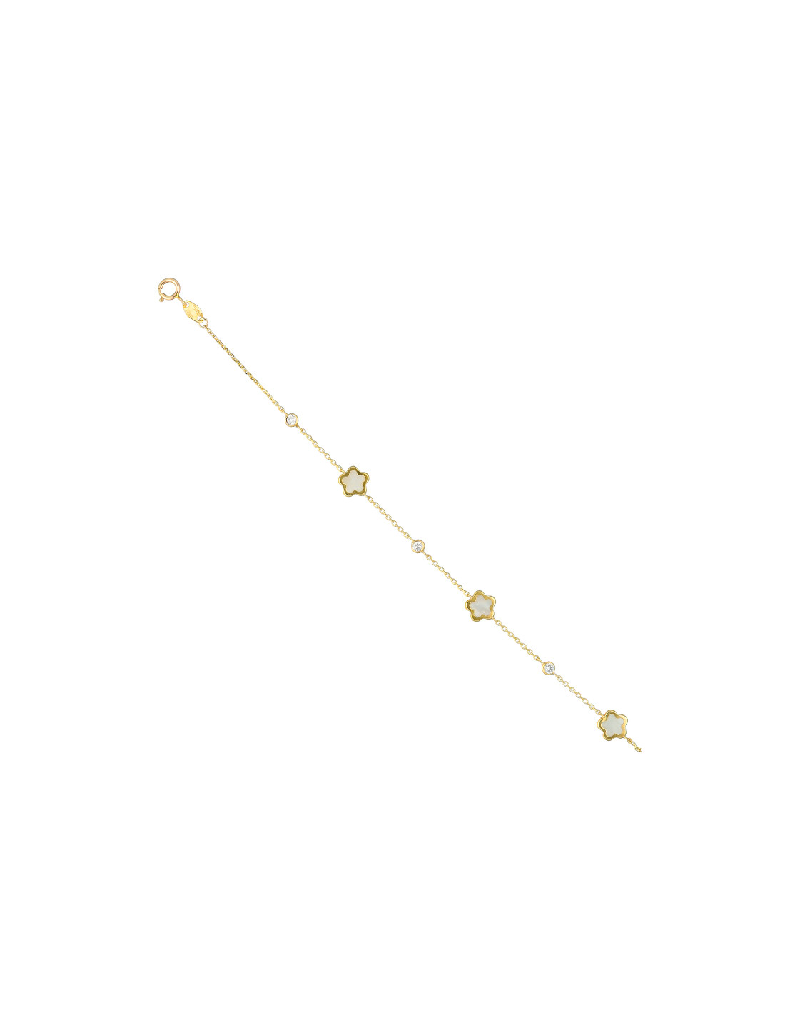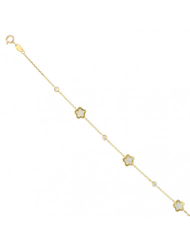 Pulseras en oro 9 Quilates PULSERA EN ORO ESTRELLA CON CIRCONITAS BLANCAS 0935561 129,00 € Pulsera en oro de 9 quilates malla forsa. Estrella central con cinco circonitas blancas y dos redondas la los lados separadas por cadena. Diámetro estrella 1cm. Largo pulsera 18cm con anillas reductoras hasta los 16cm. Añadir a carrito